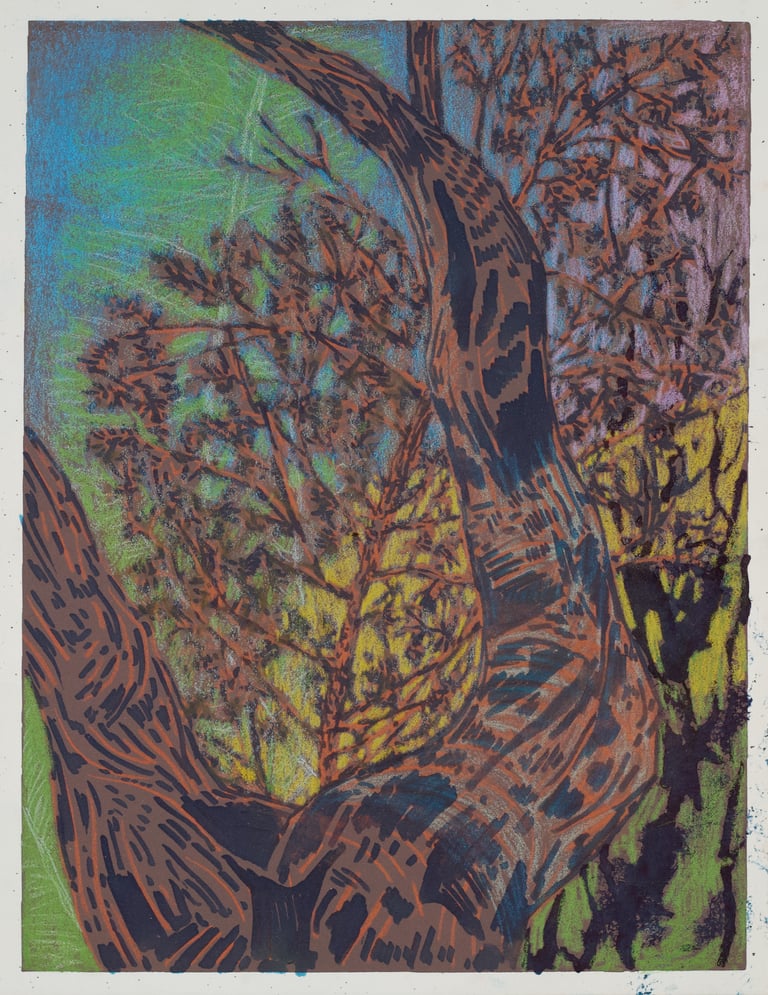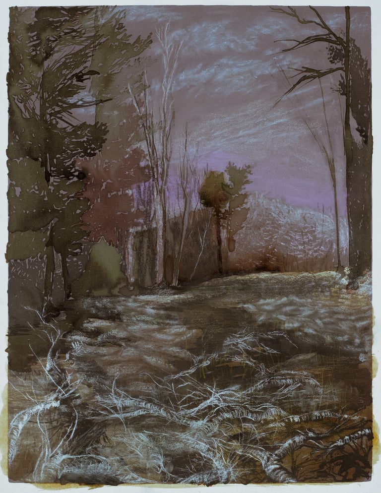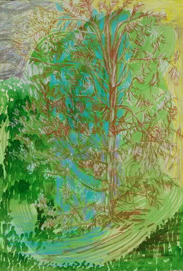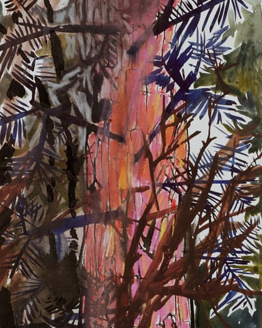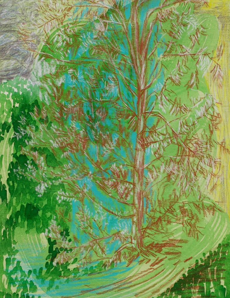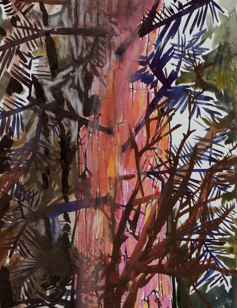 Pine, 10 1/4"x7 1/8", watercolor, ink, pastel, colored pencil, on prepared paper, 2021