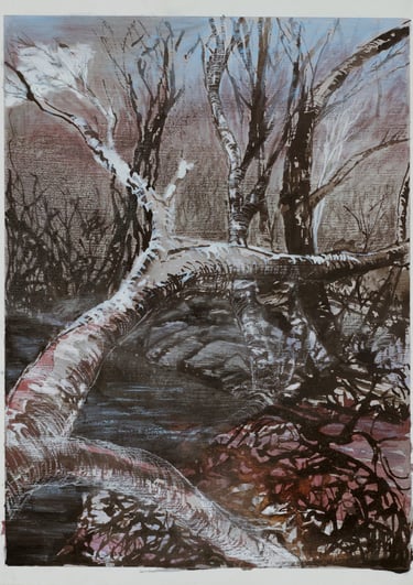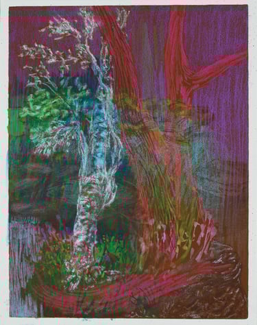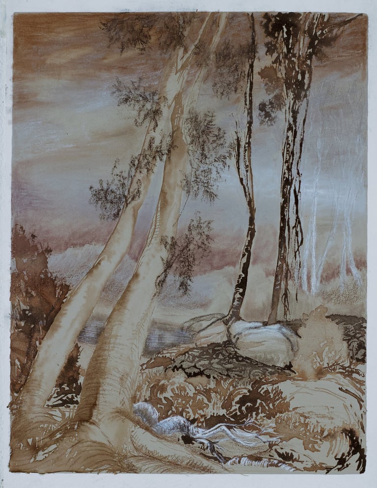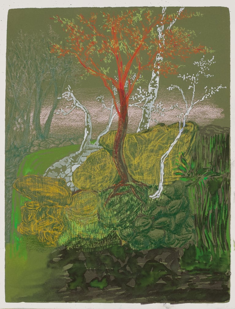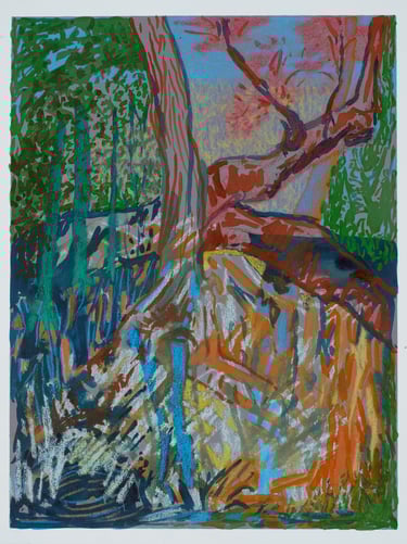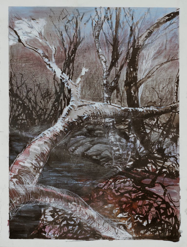 Pine, 10 1/4"x7 1/8", watercolor, ink, pastel, colored pencil, on prepared paper, 2021