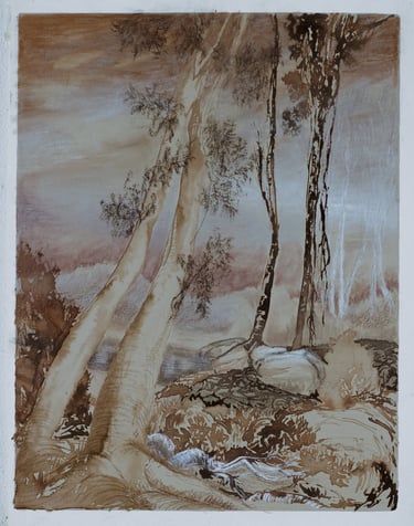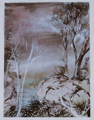 Wandering Still, 11 5/8"x11 1/4", watercolor, charcoal, pastel pencil, on prepared paper, 2024