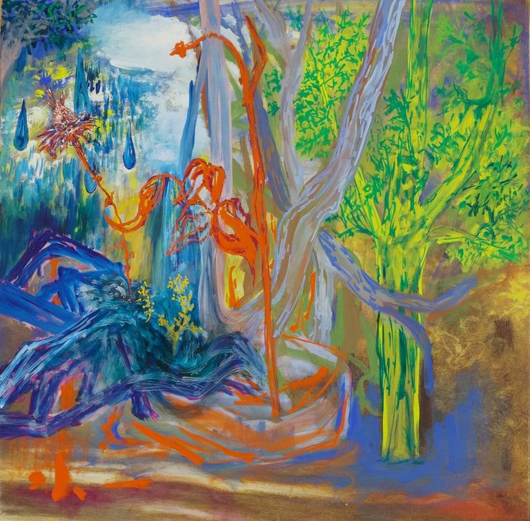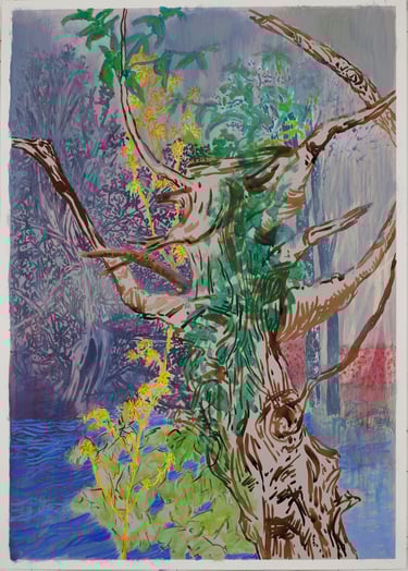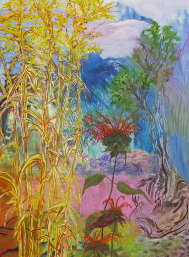 Collaborative Nature, 48"x36", oil, oil pastel, oil stick on birch panel, 2016 - 2025