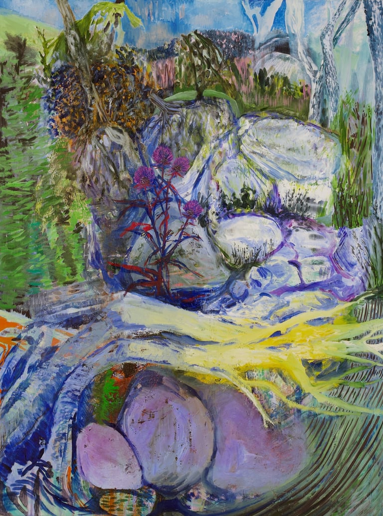 Where Blue Rocks Sit, 48"x36", oil on birch panel, 2015 - 2025