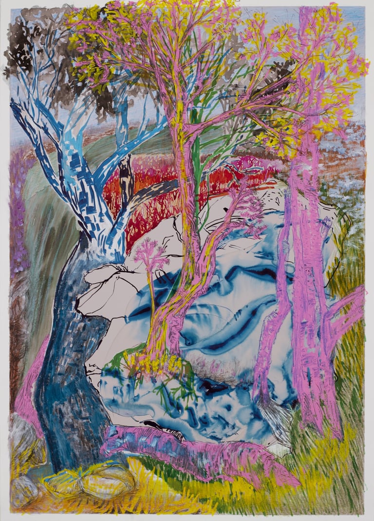 27 5/8"x19 5/8",ink, watercolor, pastel pencil, charcoal, oil pastel, oil stick, on prepared paper, 2023