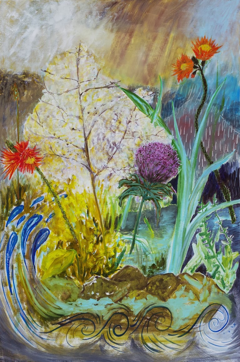 What the Rains Made (for Audrey Flack), 44"x36", oil on linen, 2024